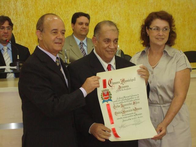 Vereador Nelson Nabor Buzinaro, o homenagado e sua esposa