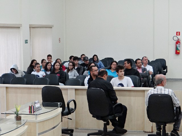 Alunos do 2º ano do ensino médio da escola EE Eng. Isac Pereira Garcez e representantes de entidades