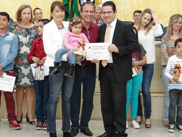 Aluna Rafaella Boschetti, Dra. Angélica Harumi Konda, Dr. Marco Antônio Colman e presidente Rodrigo Parra