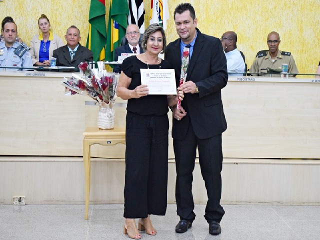 Vereador Higor Tossato e Antônia de Souza Scardovelli, indicada pela Associação de Valorização Humana (AVAHU)