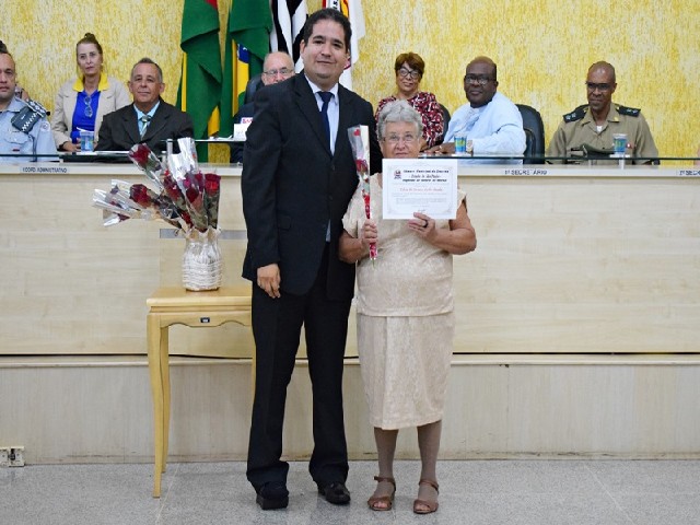 Vereador Rodrigo Castilho e Elza de Souza Lobo Paula, indicada pela Pousada Bom Samaritano