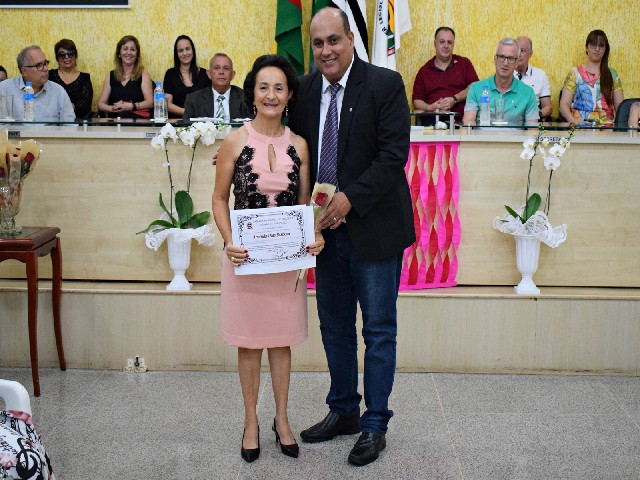 Homenageada Anainda Dias Barbosa e o vereador Juninho do Esporte