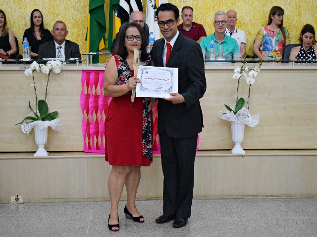 Homenageada Maria Sonia Ferreira Rangel e o vereador Kielse Munis