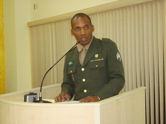 Sargento Douglas Emerson Dias dos Santos, usando a tribuna