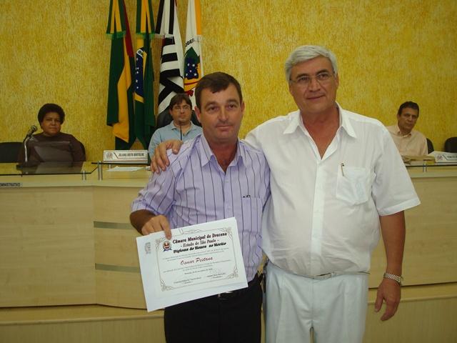 Vereador Francisco Eduardo Aniceto Rossi e o Homenageado Senhor Osmar Pestana, Líder Comunitário