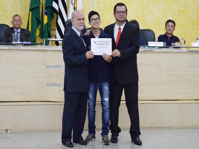 Caio César Kenzo Tabuse e os vereadores Milton Polon e Higor Tossato