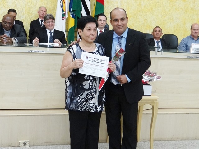 Massako Heloisa Watanabe de Toledo e vereador Juninho do Esporte