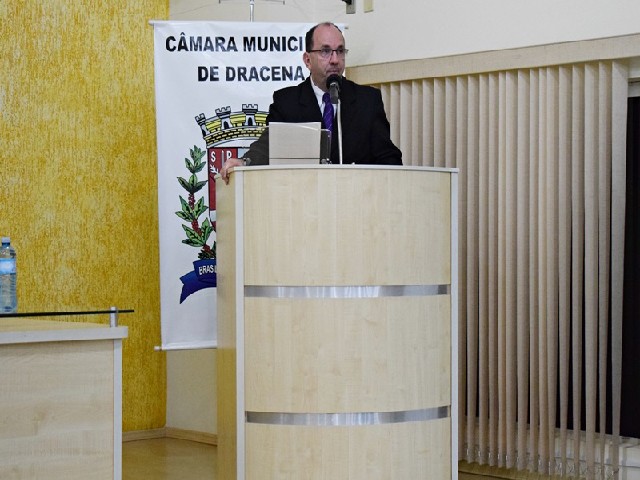 Vereador Cláudio José Pasqualeto discursa para o Sgt Benício e o Tenente Soares