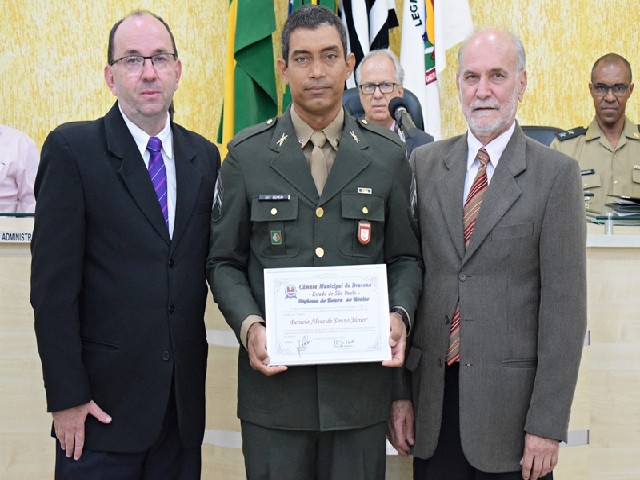 Sargento Benício recebe Diploma de Honra ao Mérito das mãos do presidente Polon e do vereador Cláudio José