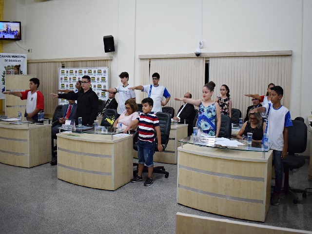 Vereadores-estudantes durante o juramento