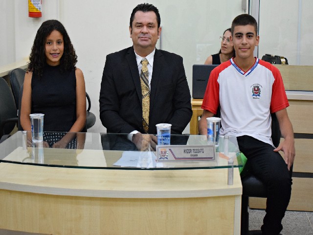 Vereador Higor Tossato e os vereadores estudantes: Cristhian Lucas de Carvalho Ribeiro e Ilana Fernanda Lima