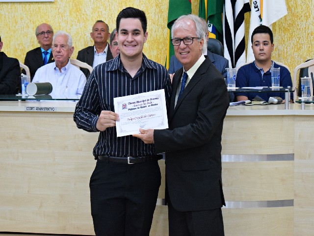 Vereador Ailton Lorensetti entrega Diploma ao vereador-estudante do Parlamento Jovem 2019