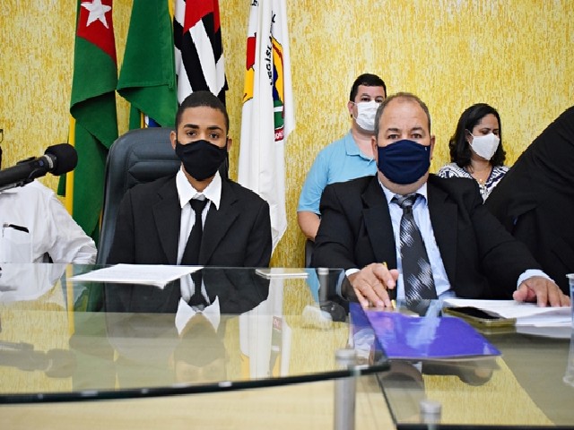Presidente Claudinei Millan e o presidente do Parlamento Jovem, Gabriel Soares do Nascimento