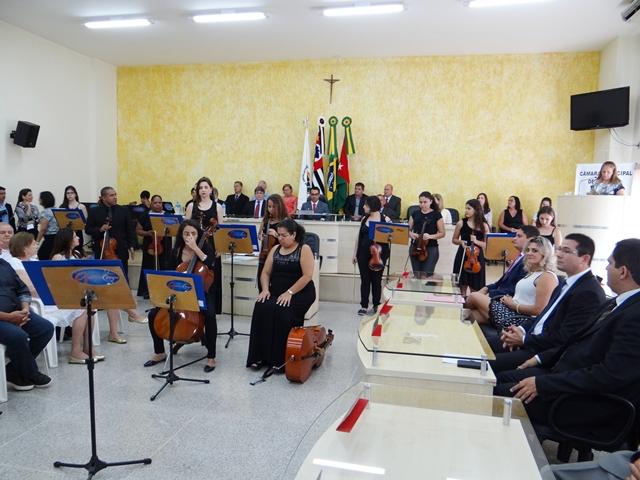 A Orquestra Camerata Guiomar Novaes entoou o Hino Nacional e o Hino a Dracena