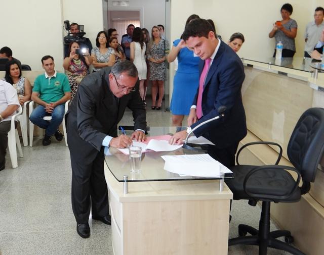 Vice-prefeito Moisés Antônio de Lima assinando o Termo de Posse