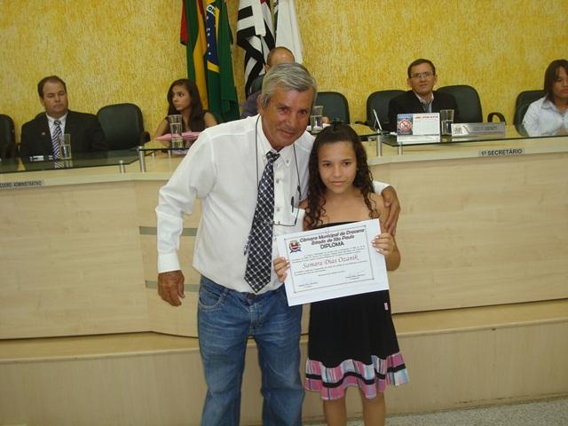 Pedro Gonçalves Vieira e a estudante Samara Dias Ozanik