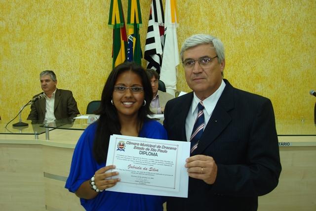 Vereadora-estudante Gabriela da Silva, da Escola Eng. Isac Pereira Garcez, e o Vereador Francisco Eduardo Aniceto Rossi.