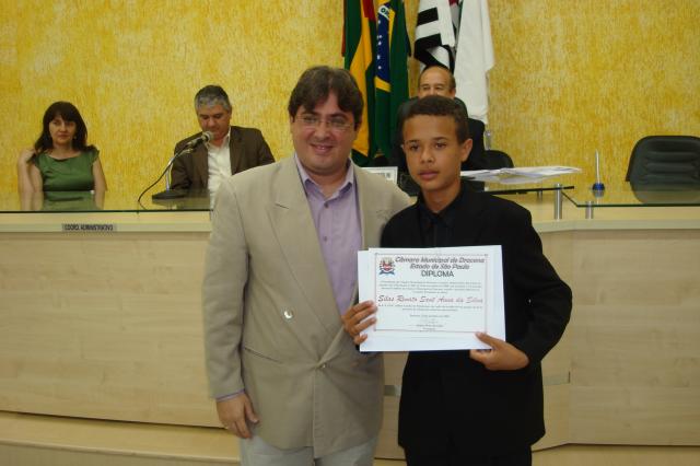 Vereador-estudante Silas Renato Sant'Anna, da Escola Profª. Julieta Guedes de Mendonça e Vereador-Presidente Juliano Brito Bertolini.