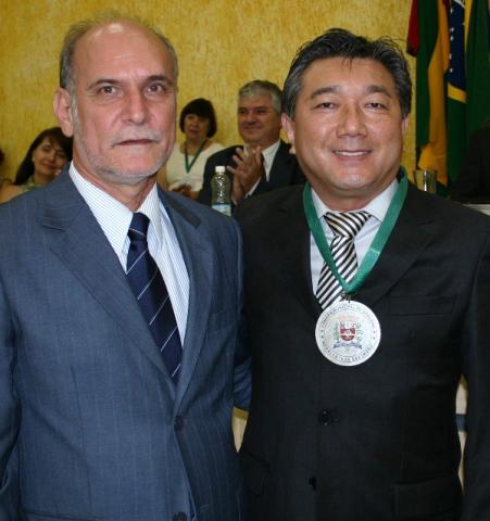 Vereador Milton Polon e o homenageado Jovison Seishi Yoshimura - Foto Cláudio José