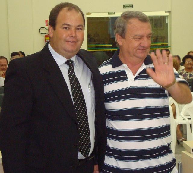Vereador Claudinei Millan Pessoa recebendo o Sr. Laercio Vidorri, sobrinho do ex-Vereador Remílio Vidotto - atuou na 2ª e 3ª Legislatura