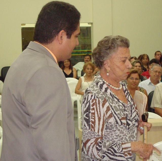 Vereador Rodrigo Castilho Soares recebendo a Sra. Vera Rosseto esposa do ex-Vereador Aldo Leopoldo Rosseto