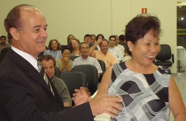 Vereador Nelson Nabor Buzinaro recebendo a Sra. Kazue Ishiy ex-Vereadora - atuou na 12ª e 13ª Legislatura