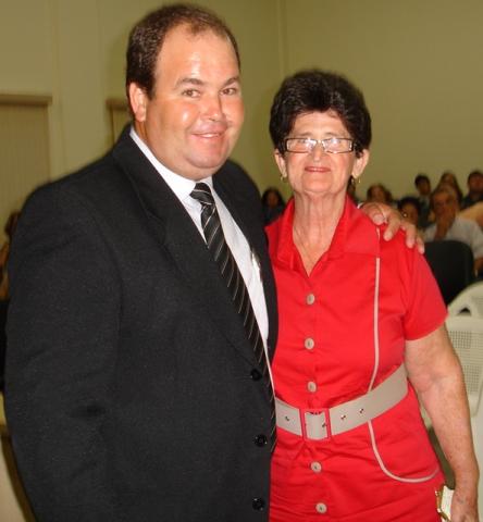 Vereador Claudinei Millan Pessoa recebendo a Sra. Lucinia Moreno Marinho esposa do ex-Vereador José Pereira Marotto