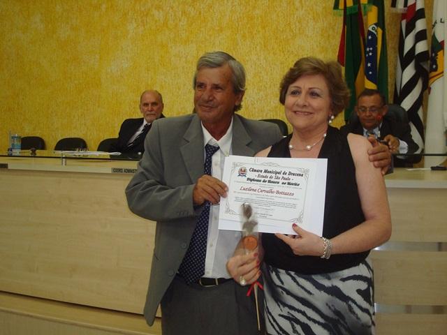 Vereador Pedro Gonçalves Vieira e a homenageada Sra. Luzilena Carvalho Bottazzo - Loja Maçônica 2 de Julho