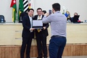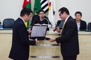 A Câmara Municipal de Dracena realizou, na noite desta segunda-feira, 20 de outubro, a 34ª sessão ordinária, marcada pela entrega dos Títulos de Cidadão Honorário de Dracena ao Dr. Talel Salle e ao Sr. Celso Dyo Shimizu, em reconhecimento aos relevantes serviços prestados à comunidade dracenense. A solenidade destacou as trajetórias de ambos os homenageados, cujas contribuições nas áreas da saúde, educação e desenvolvimento econômico deixaram marcas expressivas no município. As homenagens foram propostas pelo vereador Rodrigo Rossetti Parra e aprovadas por unanimidade pelo plenário. O Sr. Celso Dyo Shimizu, assessor técnico da Secretaria de Desenvolvimento Econômico do Estado de São Paulo, foi reconhecido por sua contribuição ao fortalecimento das relações institucionais e pelo apoio técnico que resultou em avanços econômicos e administrativos para o município. Com laços familiares e afetivos em Dracena, Celso mantém uma relação próxima com a cidade e desempenhou papel fundamental na conquista de investimentos e programas de fomento que beneficiaram o desenvolvimento local. Para compor a mesa principal, o presidente da Câmara, Danilo Ledo, convidou os homenageados, o vice-prefeito Jaime Nakano, o provedor da Santa Casa de Dracena o Sr. Celso Xavier Santin e o ex-vereador Célio Ferregutti que foi coautor do projeto que concedeu título ao Dr. Talel. A solenidade foi marcada por discursos de gratidão e emoção, celebrando o compromisso dos homenageados com o progresso e o bem coletivo de Dracena.