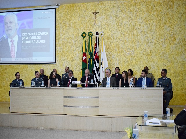 Mesa principal composta pra sessão solene de Título de Cidadão ao Desembargador José Carlos Ferreira Alves