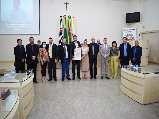Vereadores da 18ª Legislatura com o novo cidadão honorário de Dracena