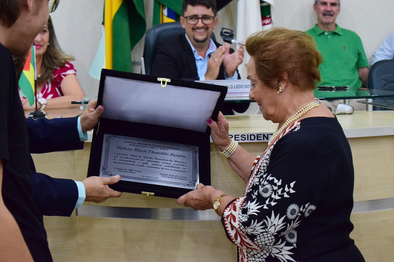 Belkiss Beretta recebendo Título de Cidadão Honorário de Dracena.