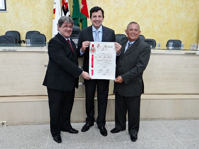 Prefeito Juliano Brito Bertolini, vice-prefeito Moisés Antonio de Lima e Floriano Pesaro