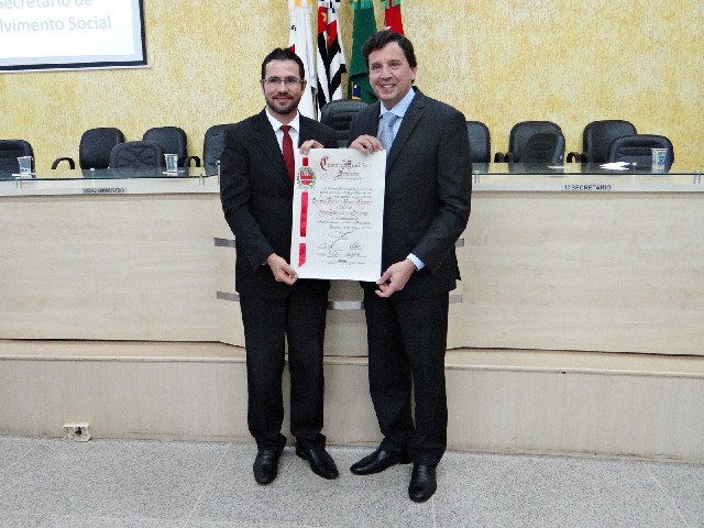 Presidente da Câmara Rodrigo Parra e Floriano Pesaro, secretário do Estado de Desenvolvimento Social